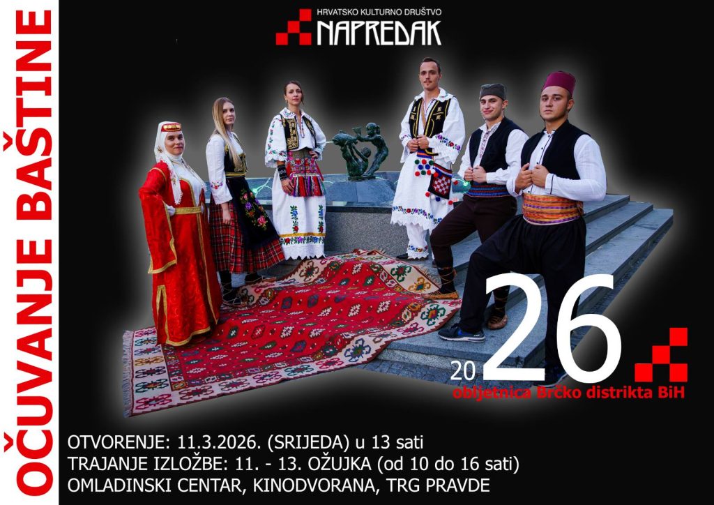 HKD Napredak Brčko povodom 26. godišnjice osnutka Brčko distrikta organizira izložbu pod nazivom „Očuvanje tradicijske baštine“. Svečano otvorenje izložbe planirano je za 11. ožujka 2026. godine u 13:00 sati. Izložba će biti otvorena za posjetitelje od 11. do 13. ožujka 2026. godine, u vremenu od 10:00 do 16:00 sati. Postav izložbe bit će smješten u […]